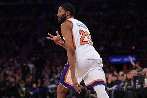上半场,尼克斯球员布里奇斯表现出色,尤其是次节独得15分,在19分半的时间里,投篮15中9,三分球4中1,拿到19分1篮板3助攻1抢断的数据,正负值+9。